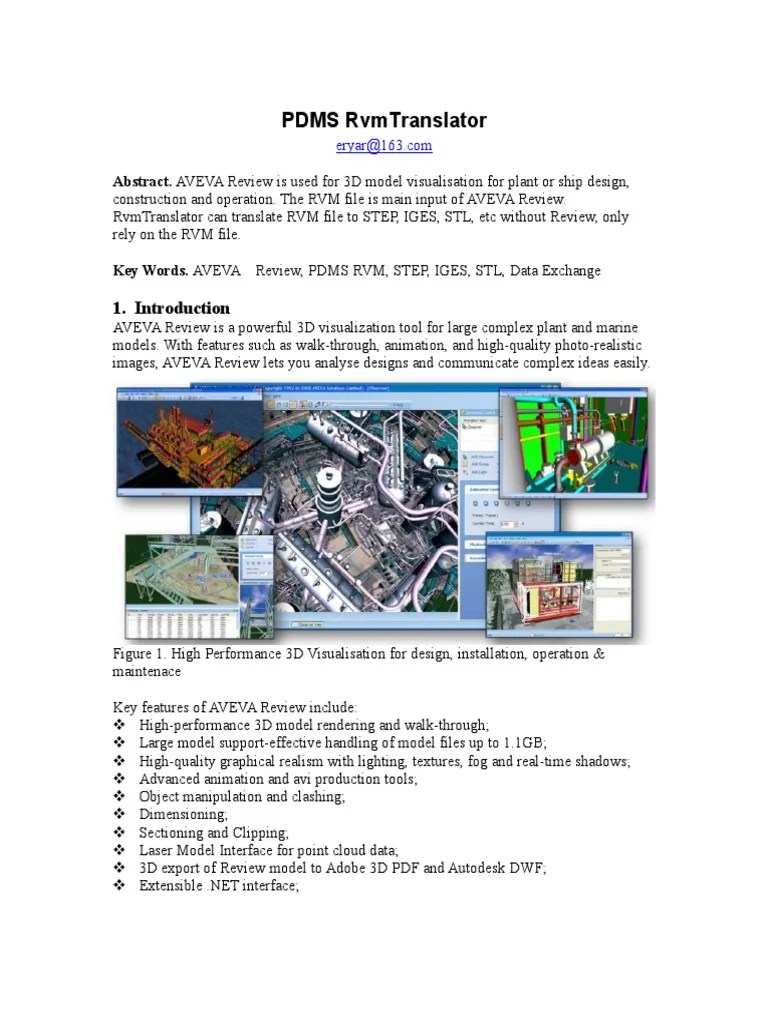 Align circumferential sample points between adjacent shapes. Export autocolour display export on $* activate of color. Export file /c:\temp\stabilzer.rvm over $* rvm file. Code to work with aveva pdms rvm files. Reads aveva pdms binary rvm and attribute files. These exports are entirely customizable depending on the project and client needs: But you can export pdms models to aveva review (.rvm) files, which can be opened in navisworks simulate. Add the fbx file (red) and change the destination file type into dxf. Please make sure to check the necessary options in the file reader for rvm in navisoworks.. Add the fbx file (red) and change the destination file type into dxf.